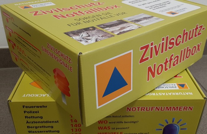 Najpomembnejši predpogoj za uspešno soočanje s kriznimi situacijami znotraj občin pa je v ozaveščanju na vseh ravneh . Tako politični odločevalci, kakor organizacije za nujne primere, pa tudi prebivalstvo v celoti, morajo biti čim bolje usposobljeni in seznanjeni glede svojih nalog in odgovornosti. Koroško društvo civilne zaščite se je na tem področju izkazalo kot pomemben partner. Javnosti je bil predstavljen medijsko učinkovit komplet civilne zaščite za nujne primere. Ta komplet vsebuje »osnovno opremo« za ukrepanje ob izpadu električne energije in je dokaz, kako lahko s preprostimi sredstvi in brez veliko truda postanemo krizno odporni. Komplet, ki vsebuje radio, ki deluje brez elektrike in ima vgrajeno svetilko, LED lučko, gorilno pasto za kuhanje, paket koroških testenin in organsko omako, je neke vrste simbol krizne odpornosti. Kompletu so priložena še brošura z varnostnimi nasveti ob izpadu električne energije in navodili, kako ravnati ob izrednih dogodkih ter priljubljena knjižica receptov civilne zaščite.